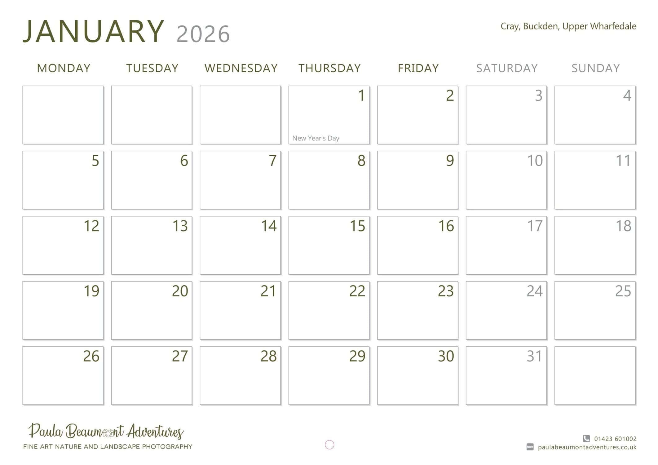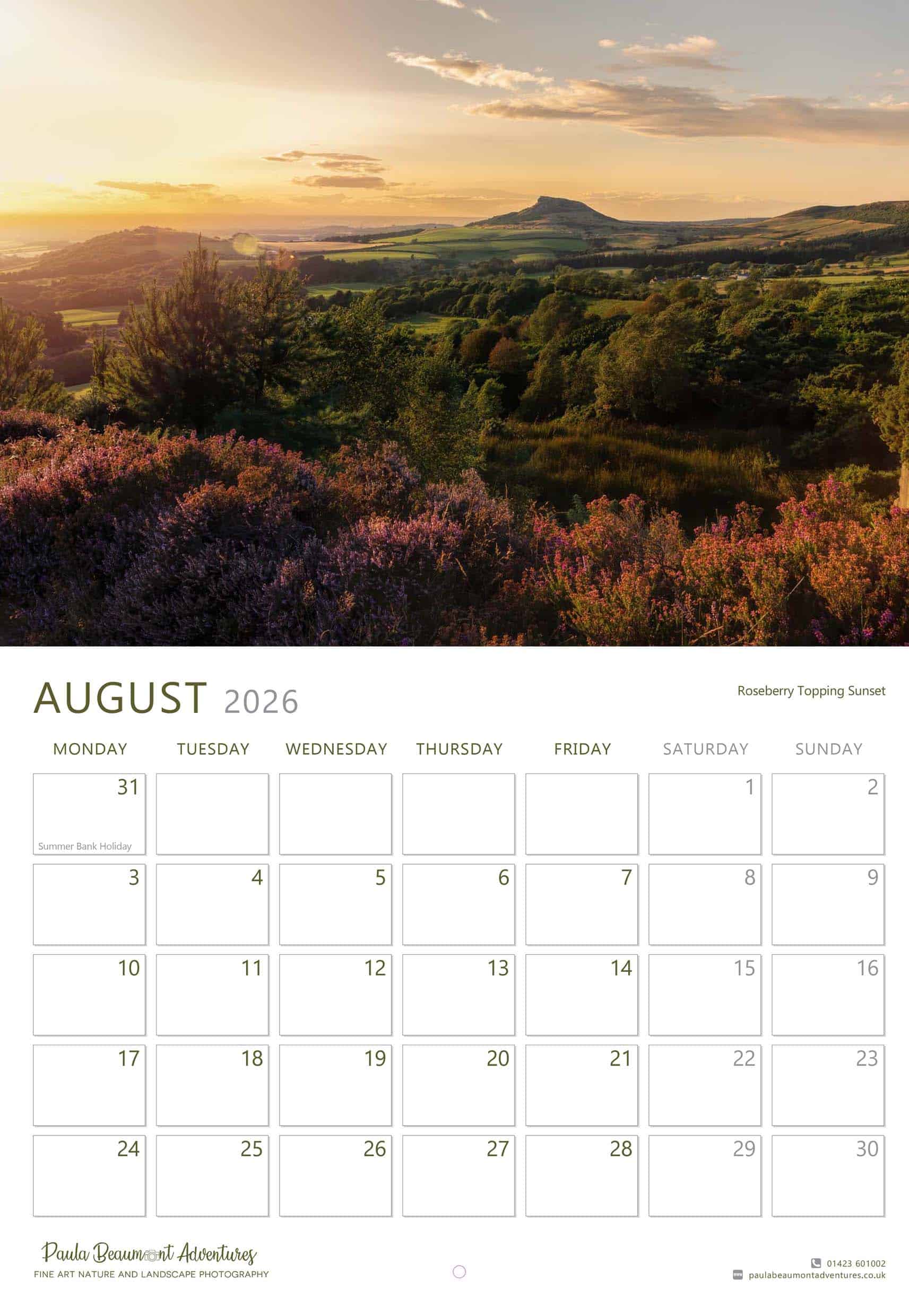 Bring a bit of Yorkshire magic into your home all year long with this beautifully produced 2026 Yorkshire Calendar, featuring 12 original photographs by award-winning landscape photographer Paula Beaumont.